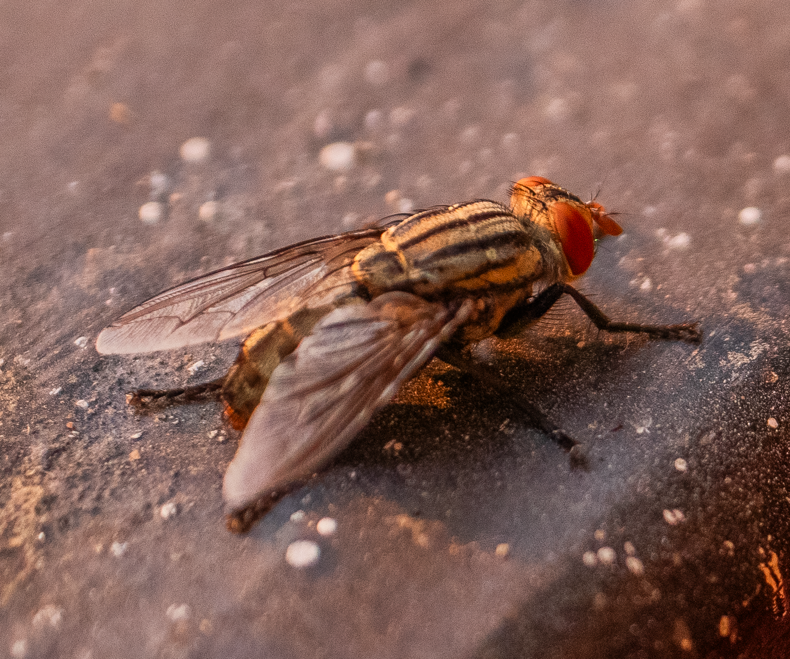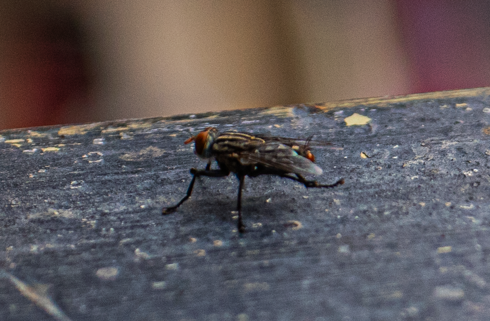 Lastly, flesh flies have three lines on top of the thorax (Mind it, the top not including the side) but houseflies have 4, or more.